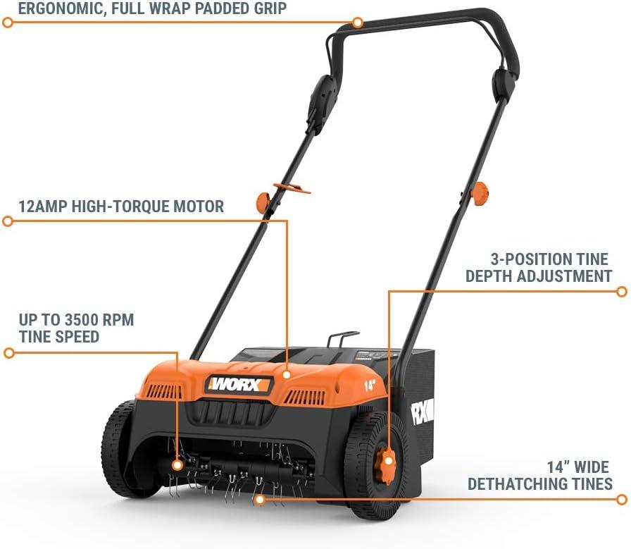 WORX WG850 12 Amp 14 Inch Corded Electric Dethatcher, Black(Electric Dethatcher)