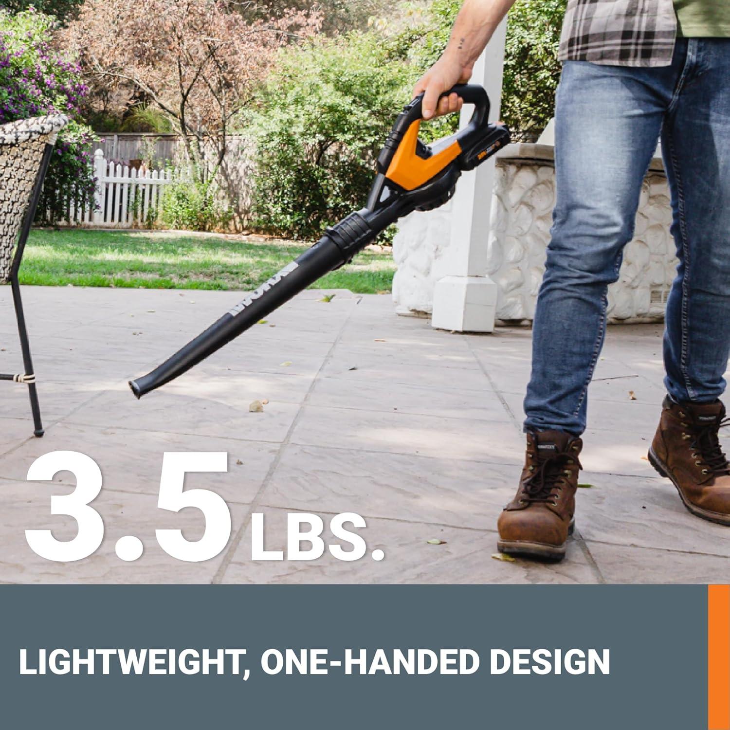 • WORX WG584.9 40V Cordless Leaf Blower, Electric Blower for Lawn Care with Brushless Motor, 2 Batteries & Charger Not Included(430CFM 40V Blower w/(2)2.5 Ah Batteries)
