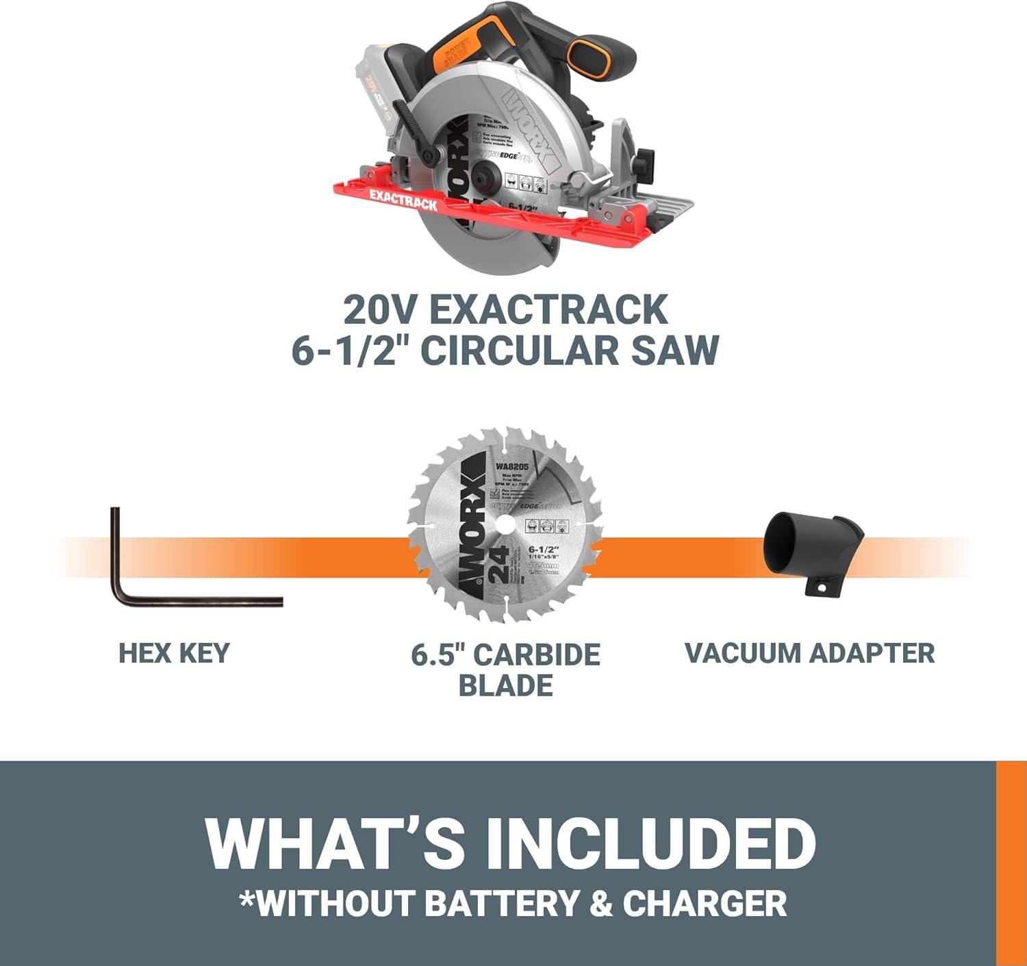 WORX 20V Cordless Circular Saw, 6-1/2-Inch,0-50 Degree Bevel Capability,Tool Only WX530L.9