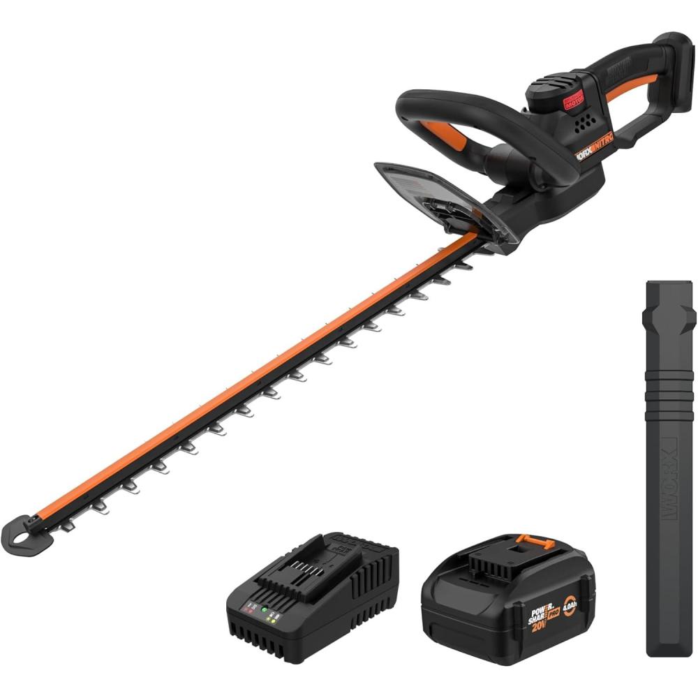 WORX Nitro WG263 22″ 20V Cordless Hedge Trimmer, Electric Hedge Trimmer with Dual-Action Blades & 3400 SPM, Brushless Bush Trimmer Cuts Branches 1″ Thick, Battery & Charger Included(22″ 20V Hedge Trimmer w/(1)4.0Ah Battery)