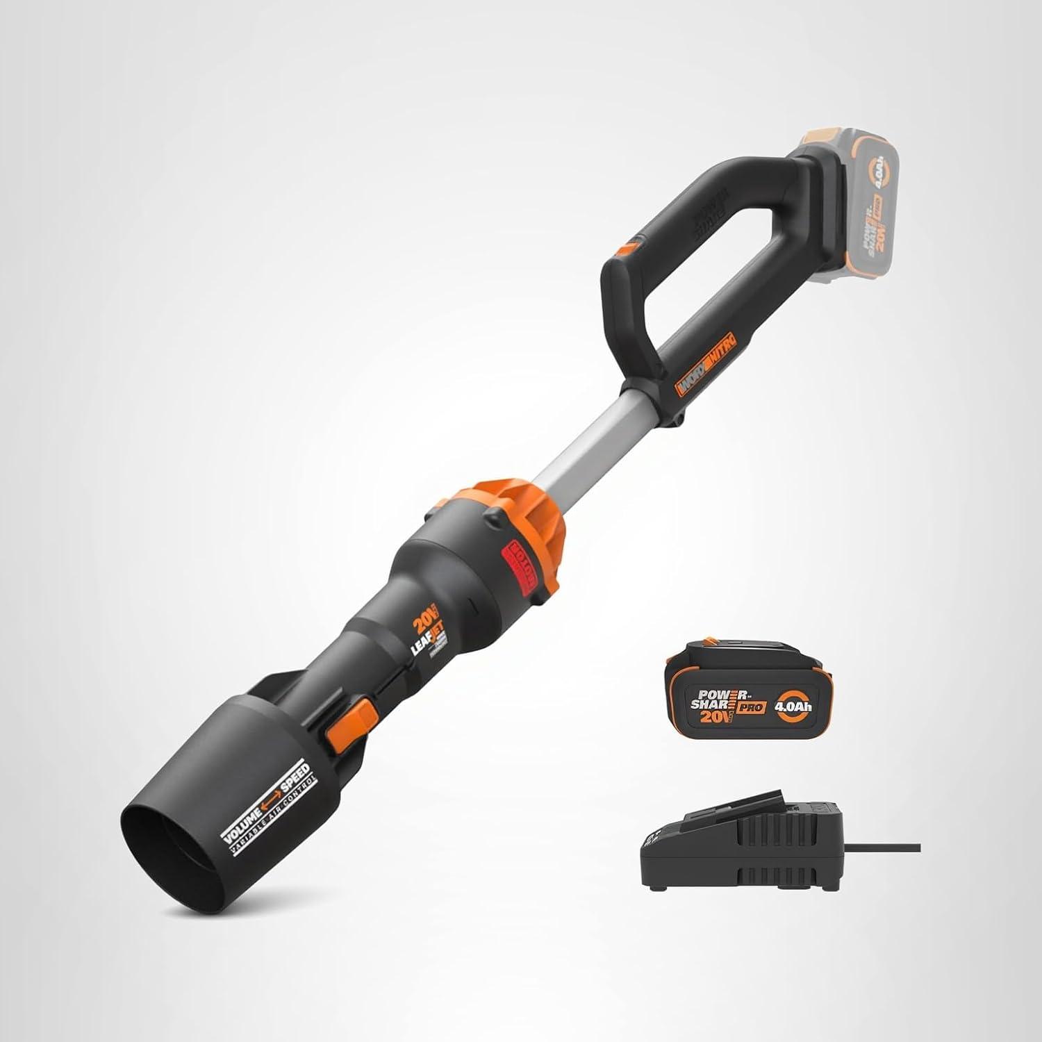 When you purchase this cordless leaf blower with battery and charger, you'll gain the convenience of the PowerShare batteries. The same PowerShare batteries that run this tool are compatible with 140+ other tools, outdoor equipment, and lifestyle products from the WORX PowerShare platform. PowerShare Pro batteries are engineered to remain cool, stay protected, and optimize power to maximize tool performance and runtime—so you can do more on fewer recharges. And speaking of power, the leaf blower's state-of-the-art brushless motor 2.0 outperforms other blowers for lawn care by providing 40% more power, a 10% extended runtime over standard brushless motors, and a staggering 70% more potency and 10X the equipment life compared to brushed motors.