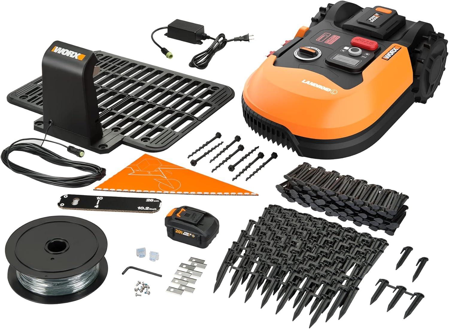 Raise the roof on the new Landroid Lift-Top Garage. Check Landroid’s controls while it charges, just by flipping the lid. Landroid is a tough machine and can withstand low to medium-grade inclement weather, but when the rain or hail really start to come down, or temps get into the 90s and 100s, everyone deserves some shelter, even your Landroid. This garage will keep it in peak performing condition and extend its life cycle. It runs better when it’s been out of the sun for a while, too, because cooler batteries last longer. And Landoid even knows enough to get out of the rain—Its sensors can detect droplets, and it returns to its charging station and garage to wait it out. Besides, everyone knows you shouldn’t cut wet grass, so does Landroid. The garage is made of water-resistant materials and protects it from harmful UV radiation. Its support legs are sturdy and are great at deflecting errant soccer balls and playful dogs. It’s 27.8 inches long x 21.8 inches wide x 15.7 inches high (when it’s closed). It’s a snap to install, just fits over the charging station and screws into the base. We even threw in the screws and the hex key to do it. Robotic lawn mowers are changing the game in home lawn care, but they are a bit of an investment—Protect yours with the Landroid Lift-Top Garage.