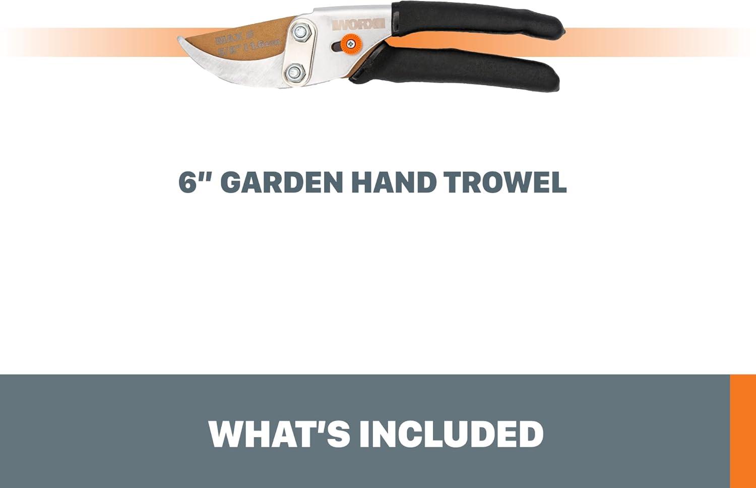 The Worx 5/8 inch Cutting Capacity Bypass Pruner is expertly engineered, with a bypass blade design that’s ideal for precisely cutting branches & stems. Fully hardened, precision-ground steel blades stay sharper, longer, for better results. The non-stick coating on the blades reduces friction for smoother cutting, less binding, and even adds rust-resistance. While the double-dipped plastic handle is non-slip and comfortable to use. Plus, this tool comes with a 5-year warranty, so you can be confident that you and your Worx 5/8 inch Cutting Capacity Bypass Pruner will be cutting branches and stems for years to come. Worx has added a collection of garden hand tools to complement their lineup of outdoor power equipment. Now Worx users have everything they need to tackle and tame their lawns & gardens and make them look professionally cared for, with less effort and less expense. From the big jobs, like mowing the grass & clearing the yard of leaves, to the smaller jobs, like tilling the soil in the garden or cutting flowers, Worx has you covered with a comprehensive selection of lawn care equipment. And of course, like all Worx products, these tools are built to last, ergonomically designed to be comfortable to use, and cost-effective so you can round out your entire Worx tool collection for less.