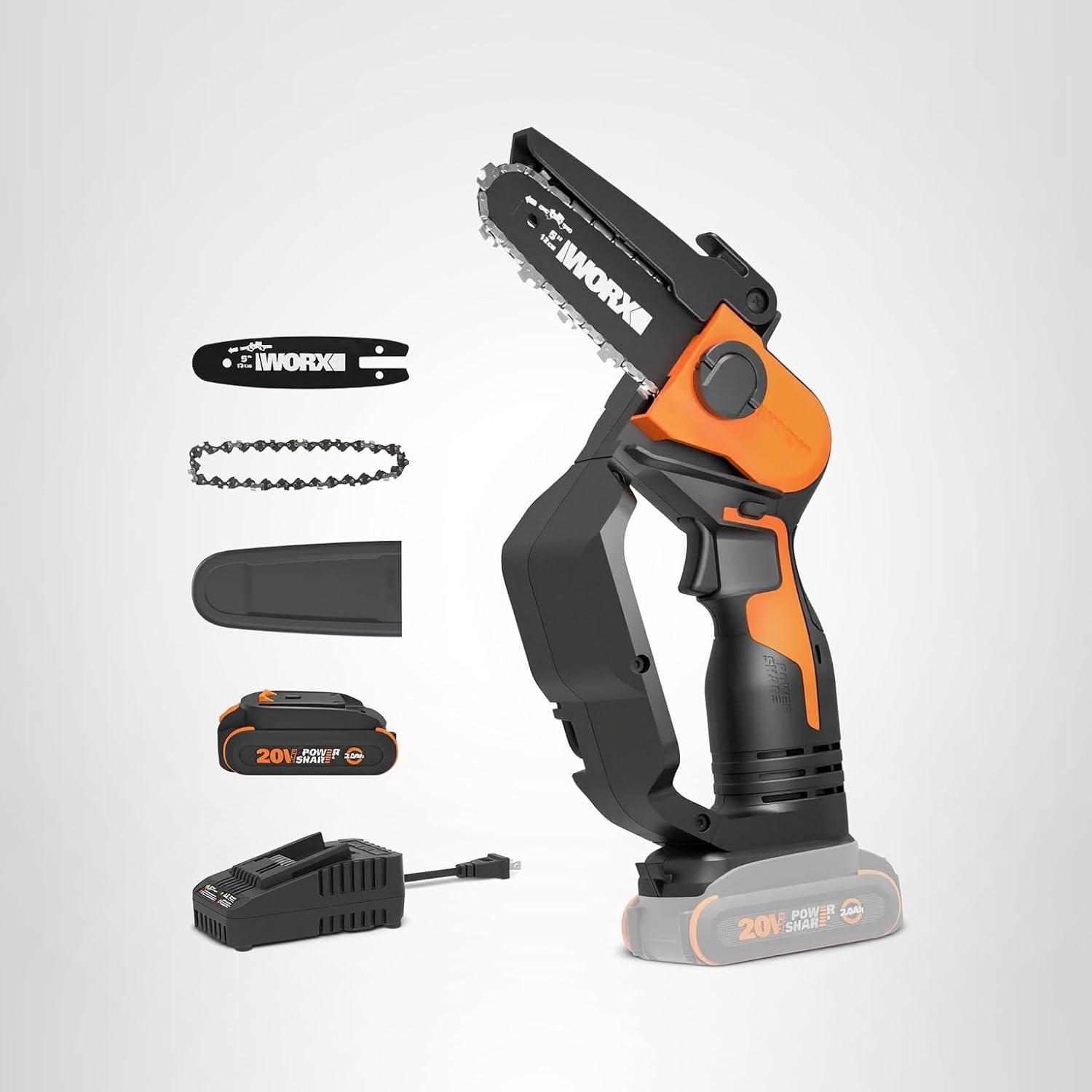 WORX WG324.9 20V Power Share 5” Cordless Pruning Saw, Bare Tool Only, Black and Orange(20V 2.0 Batt/Charger)