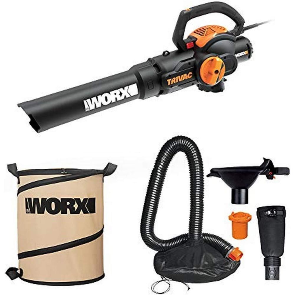 WORX WG512 Trivac 2.0 Electric 12-amp 3-in-1 Vacuum Blower/Mulcher/Vac with LeafPro Universal Leaf Collection System and Landscaping 26-Gallon Collapsible Yard Waste Bag/Leaf Bin