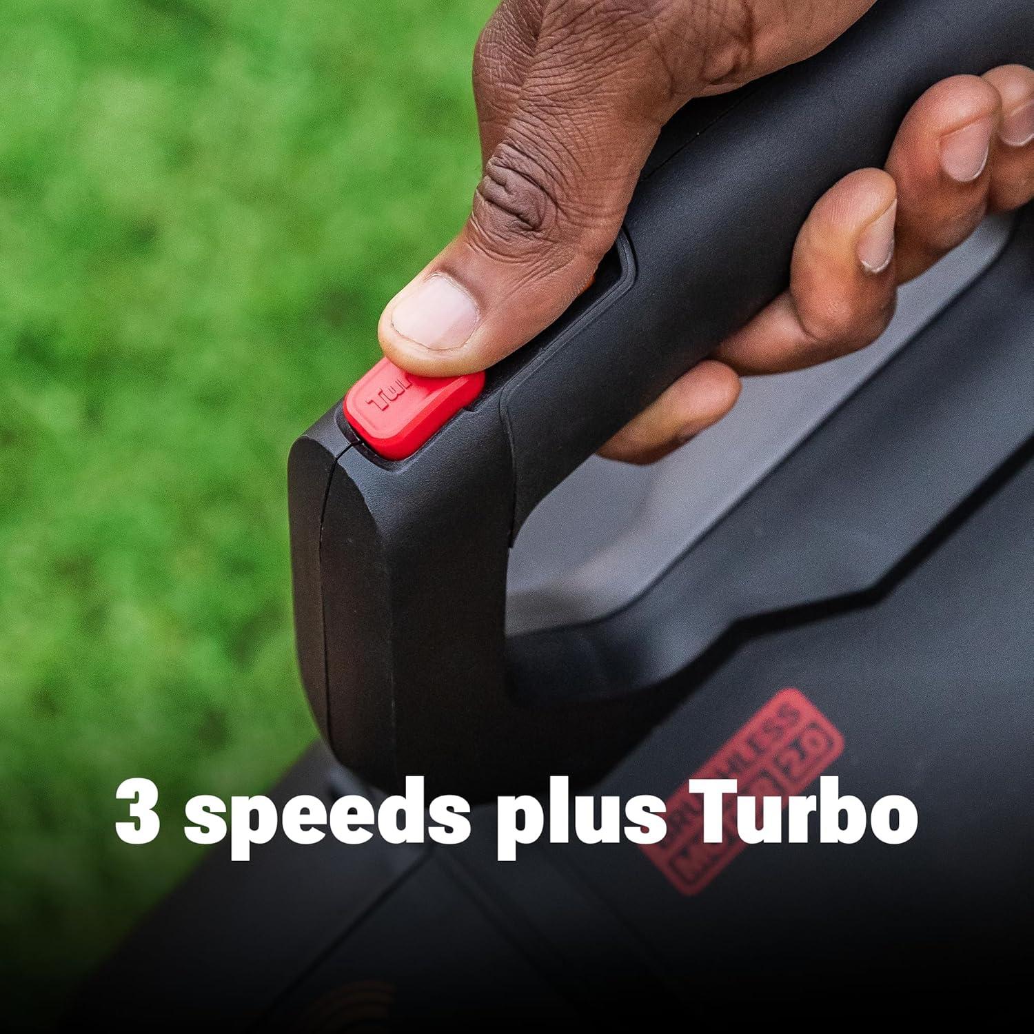 With 2-speed control, this electric leaf blower makes it easy to adapt the output to fit specific tasks. Choose the lower speed for gentle sweeping or to clear out tight spaces. Got a more intense cleanup project? Easily switch to the higher speed for swift results. All this power is harnessed within a lightweight and compact design of the battery leaf blower.