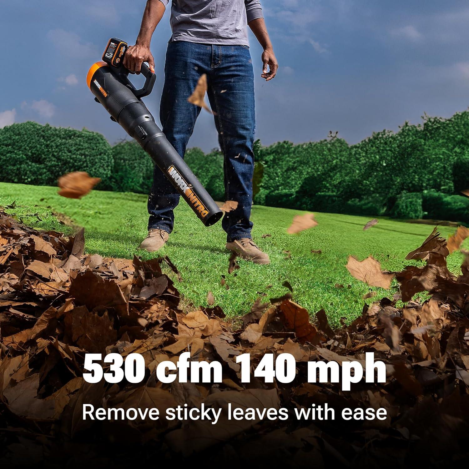 WORX WG547.9 20V Cordless Leaf Blower, Electric Blower with Turbine Fan, Blowers for Lawn Care with 2 Speed Control, Battery & Charger Not Included(530CFM 40V Blower/Tool Only)